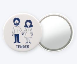 缶バッジミラーは57ミリと手のひらに収まりながらも、しっかりと携帯ミラーとしての役割も果たします。